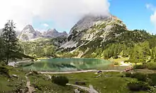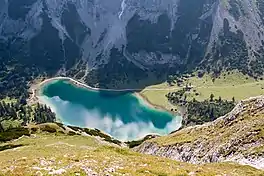 The Seebensee is a natural high mountain lake (an ice-age affected, rock basin lake[1]) at a height of 1,657 metres, south of Ehrwald in the Mieming Range. It is surrounded by the Vorderer Tajakopf in the east, the Vorderer Drachenkopf in the south and the Ehrwalder Sonnenspitze in the west.