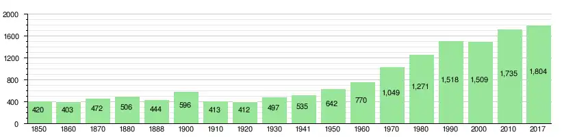 As of 2017, children and teenagers (0–19 years old) make up 27.1% of the population, while adults (20–64 years old) are 58.0% of the population and seniors (over 64 years old) make up 14.9%.[8] In 2015 there were 781 single residents, 885 people who were married or in a civil partnership, 65 widows or widowers and 76 divorced residents.[10]