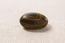 In August 2015, the LDS Church released images of one of Smith's seer stones—a rounded, smoothed, brown and black stone—in a volume of the Joseph Smith Papers Project containing the printer's manuscript of the Book of Mormon.[1][2] The stone shown in the released images has been identified by geologists as a form of jasper, found in a banded iron formation, thus called banded jasper.