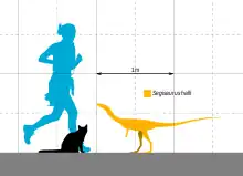 Segisaurus (meaning "Segi canyon lizard") is a genus of small coelophysid theropod dinosaur, that measured approximately 1 metre (3.3 feet) in length. The only known specimen was discovered in early Jurassic strata in Tsegi Canyon, Arizona, for which it was named. Segisaurus is the only dinosaur to have ever been excavated from the area.