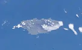 Seguam Island (Aleut: Saĝuugamax;[1] Russian: Остров Сигуам) is a small volcanic island in the Andreanof Islands group in the Aleutian Islands of Alaska. The island is mountainous and oval shaped with a land area of 80.04 square miles (207.3 km2). It is 16 miles (26 km) long and 6.8 miles (10.9 km) wide. The 2000 census reported a population of one person.