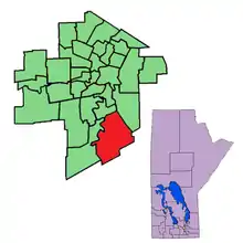 Seine River is a provincial electoral division in the Canadian province of Manitoba. It was created by redistribution in 1989, and has formally existed since the 1990 provincial election. The constituency is located in the southern section of the City of Winnipeg.