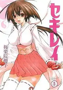 Sekirei is a manga series written and illustrated by Sakurako Gokurakuin. It was serialized in Square Enix's seinen manga magazine Young Gangan between December 3, 2004 and August 21, 2015.[13][14] Square Enix published 18 tankōbon volumes between June 25, 2005 and October 24, 2015.[15][16] A sequel to the manga titled Sekirei: Kanojo no Inai 365-nichi no Koto (セキレイ 彼女のいない365日のこと, Sekirei: 365 Days Without Her) began serialization in Young Gangan on May 2, 2017.[3] Yen Press licensed the original series in North America and began releasing the series with the first volume digitally in November 2015.[17] They later began releasing the series in print in omnibus volumes combining two volumes into one in July 2017.[18]