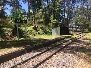 Selby Station was opened in May 1904, and named after the local landowner and Shire President W. Selby. The station consists of a short platform and corrugated iron waiting shelter. Trains do not normally stop here but will stop if required.