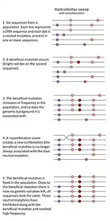 - The "classic selective sweep" or "hard selective sweep" is expected to occur when beneficial mutations are rare, but once a beneficial mutation has occurred it increases in frequency rapidly, thereby drastically reducing genetic variation in the population.[1]