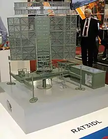 The RAT-31DL is an L-band solid-state active phased array 3D radar with an effective range of over 500 km.[1] It is derivative of widely used RAT-31 SL.
