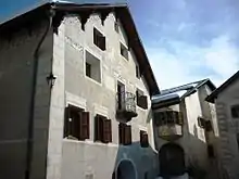 Chönz was a proponent of Romansh. When she married, she changed the spelling of her name to replace the German "K" with the "Ch". She wrote the original version of the A Bell for Ursli in Upper Engadin Romansh. She persuaded artist Alois Carigiet to be her illustrator. From 1940 to 1945 he visited Guarda, Switzerland and created the illustrations. He used the nearby houses Chasa 51 as the template for the Ursli house in the book.[5][6][1][2][3][7][8][4][9]