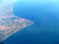 Selsey is a seaside town and civil parish, about eight miles (12 km) south of Chichester in West Sussex, England. Selsey lies at the southernmost point of the Manhood Peninsula, almost cut off from mainland Sussex by the sea. It is bounded to the west by Bracklesham Bay, to the north by Broad Rife (rife[3] being the local word for stream or creek), to the east by Pagham Harbour and terminates in the south at Selsey Bill. There are significant rock formations beneath the sea off both of its coasts, named the Owers rocks and Mixon rocks. Coastal erosion has been an ever-present problem for Selsey.[4]