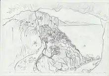 Marcello Cominetti's drawing of the "Grotta del Fico" (Fico's Cave) from the sea