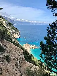 The Selvaggio Blu (Wild Blue) is a trekking route in the territory of the district of Baunei (Sardinia). It was conceived in 1987 by Mario Verin, (photographer and alpinist) and Peppino Cicalò (architect), President of the Nuoro section of the Italian Alpine Club. The itinerary extends for over 40 kilometers (approximately 25 miles) from the touristic port of Santa Maria Navarrese (Baunei) to the beach of Cala Sisine (Baunei).[1] It takes on average 4 days to complete.
