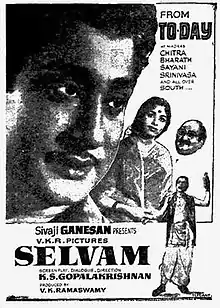 Selvam is a 1966 Indian Tamil-language comedy drama film[1] written and directed by K. S. Gopalakrishnan from a story by B. S. Ramiah, and produced by V. K. Ramasamy. The film stars Sivaji Ganesan and K. R. Vijaya. It was released on 11 November 1966.[2]