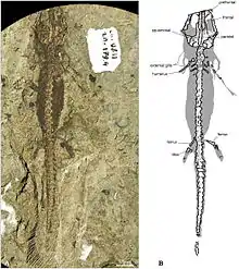 | A fossil with soft tissue impressions interpreted at right | |