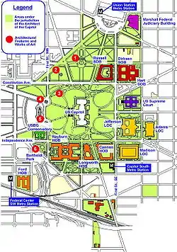 The three Senate office buildings are along Constitution Avenue north of the Capitol: