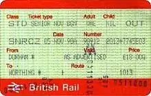 During the early 1970s, some of British Rail's Regions offered a series of small, localised travel promotions for people of or near retirement age. The London Midland and Southern regions were particularly active in this, although other examples existed elsewhere.[1] These promotions were characterised by restricted validity and geographical availability. For example, one Southern Region scheme introduced in 1970 offered pensioners half-price travel at off-peak times on Tuesdays, Wednesdays and Thursdays only, for journeys from a set list of around twenty stations, upon production of their pension book (to confirm their eligibility).[2]