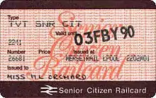 - "Senior Railcard: Tickets with which you can use your discount". Archived from the original on 3 July 2007.