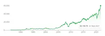 ![]() Performance of the BSE SENSEX index between 1990 and 2021 | |