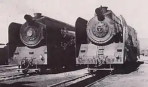 Following the end of the Pacific War and the subsequent partition of Korea in 1945, these locomotives were all divided between the Korean National Railroad in the South and the Korean State Railway in the North;[1] of the 141 Pashi-class locomotives that survived the war, 73 went to the South and 68 to the North at the time of the division.[2] In the South, the KNR used them on passenger trains into the late 1960s; the last ones were retired around 1971. Little of their service lives in the North is known; with the great emphasis placed on electrification of trunk lines in the DPRK in the 1950s and 1960s,[3] and the service introduction of the Red Flag 1-class electric locomotives from January 1962,[4] by the end of the 1960s the bulk of North Korea's trunk lines had been electrified, and steam power had been mostly relegated to the secondary lines,[5] so it is likely that North Korean Pashi-class locomotives did not last much longer in service than those in the South.