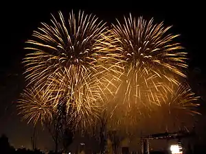 About 100,000 fireworks went off, and more than a million of viewers visited every year.[4] Seoul International Fireworks Festival is the typical festival in Korea. There are about 20,000 visitors at main event hall at Yeoido.[5] Moreover, there are about 100,000 visitors near Wonhyo Bridge, Hangang Bridge, Hangang Park Ichon Area and more places. In total, about 120,000 visitors enjoyed the festival.[6][7][8]