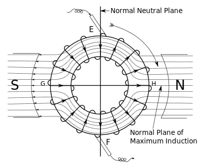 ![]() Actual position of the commutating plane to compensate for field distortion. |