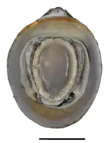 Ventral view of a Septaria porcellana. Scale bar is 10 mm.