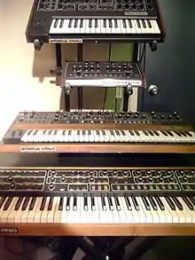 The engineer Dave Smith founded Sequential Circuits in San Francisco in 1974.[1] The first Sequential Circuits product was an analog sequencer for use with Moog and ARP synthesizers, followed by a digital sequencer and the Model 700 Programmer, which allowed users to program Minimoog and ARP 2600 synthesizers.[2] The Model 800, launched in 1975, was controlled and programmed with a microprocessor.[3]