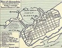 Besides the image of the god, the temple precinct housed an offshoot collection of the Library of Alexandria.[2] The geographer Strabo tells that this stood in the west of the city.