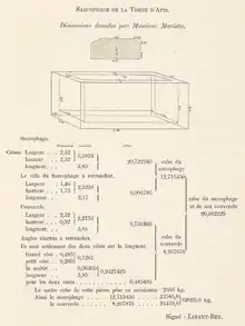 - Mariette, Auguste (1882). Maspero, Gaston (ed.). Le Sérapéum de Memphis (in French). Vol. 1. doi:10.11588/DIGLIT.4183.