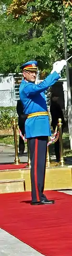 In 1945, the band was re-founded by order of Marshal Josip Broz Tito as the Band of the Guard of the Yugoslav People's Army.[lower-alpha 1] It continued the tradition pioneered by partisan bands in popularizing songs and music from the National Liberation War and became a cultural institution that developed a wide artistic culture throughout the Yugoslav People's Army. The task of the band at the time was to perform protocol duties at the highest of bodies in the Socialist Federal Republic of Yugoslavia on behalf of the JNA.[7] With the break-up of Yugoslavia, the Guard Orchestra remained within its scope of work. Protocol tasks at the highest state level, representation of the Republic of Serbia and the Serbian Armed Forces both at home and abroad have remained the band's primary responsibility.