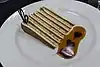| Dobos cake | ![]() | Добош торта | Doboš torta | A five-layer sponge cake, layered with chocolate buttercream and topped with thin caramel slices. |