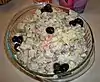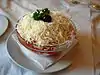 | Russian salad | ![]() | Руска салата | Ruska salata | Diced boiled potatoes, carrots, pickles, green peas, eggs and ham, dressed with mayonnaise. |
