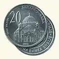 DIN 20 | 28 mm | 9.00 g | reeded | Church of Saint Sava | Logo of the National Bank of Serbia | 2003 | 2 July 2003 | |||||||