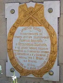 The Serbian population was generally unenthusiastic and did not support the war, and did not understand the reasons behind it.[23] According to the academic Slobodan Jovanović, the Serbian population generally viewed the conflict as Milan's "cabinet war". Politician Milan Piroćanac believed that Milan did not start the war for patriotic reasons, but that he instead wished to secure funds from abroad in order to repay his numerous debts to the Austro-Hungarians.[24] A number of Serb officers and civil servants were against the war, describing the Bulgarians as the Serbs' "neighbours" and "Orthodox brothers". The academic Milan Đ. Milićević recounted that many Belgraders protested against the war and commented that Serbs and Bulgarians "are almost the same people". Milan's consort Natalie was also opposed to the war.[25] On the other hand, part of the Serbian military establishment fully supported the war effort, citing Bulgarian atrocities against Serb civilians, including murder, theft and rape, in southern Serbia and what the Serbian leadership called Old Serbia, which was still under Ottoman control.[26] After the war, Milan turned his attention to modern-day North Macedonia, where Serbian and Bulgarian interests were conflicted.[27] The Serbian army and political elite drew numerous lessons from the war, and proceeded to modernise and adapt the military and its tactics to the demands of modern warfare.[28]