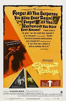 Sergeant Rutledge is a 1960 American Technicolor Western film directed by John Ford and starring Jeffrey Hunter, Constance Towers, Woody Strode and Billie Burke.[1] The title was also used for the novelization published in the same year.[2] Six decades later, the film continues to attract attention because it was one of the first mainstream films in the U.S. to treat racism frankly and to give a starring role to an African-American actor.[3] In 2017 critic Richard Brody observed that "The greatest American political filmmaker, John Ford, relentlessly dramatized, in his Westerns, the mental and historical distortions arising from the country’s violent origins—including its legacy of racism, which he confronted throughout his career, nowhere more radically than in Sergeant Rutledge."[4]