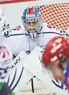 | KHL totals | 93 | 27 | 44 | 13 | 4852 | 228 | 2 | 2.82 | .907 | 3 | 0 | 0 | 124 | 9 | 0 | 4.33 | .842 | |||||