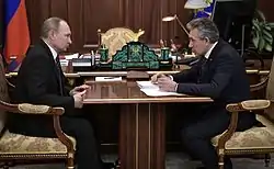 VEB, which has been dubbed Vladimir Putin's "pet bank" and "slush fund" by Western observers, also lent significantly for the 2014 Winter Olympics in Sochi, covertly funded pro-Russian groups in Ukraine, and has frequently bailed out Russian oligarchs close to Putin.[13] According to Foreign Policy's assessment, VEB "functions as an off-the-books kitty that allows President Vladimir Putin to reward his allies and shower money on his pet projects and political priorities."[14] When Gorkov arrived in 2012, VEB was struggling to stay afloat; it reportedly needed 1.3 trillion rubles (approximately $22.8 billion) by 2020 to avoid defaulting on its debt.[6][15] In 2015, the bank received a $20 billion bailout[16] following approval of Minister of Finance Anton Siluanov.[12][14]