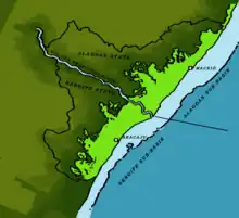 The Sergipe-Alagoas Basin is a continental margin basin in the Sergipe and Alagoas states of northeastern Brazil, about 20 to 50 kilometres wide onshore, but with its widest extension offshore,[1] more precisely 13,000 km2 onshore and 40,000 km2 offshore.[2] In general, "Sergipe-Alagoas Basin" refers to the Sergipe and Alagoas sub-basins, but it also consists of the Jacuípe and Cabo sub-basins. Studies of the basin's geology date back to the first half of the 19th century, when J. Henderson in 1821 published preliminary notes on the region's geology.