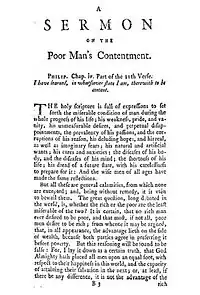 - "On the Poor Man's Contentment" Sermon