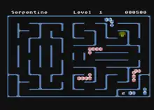 Serpentine is a video maze game written by David Snider for the Apple II and published by Broderbund in 1982.[2][3] Serpentine's gameplay and visuals are similar to the Konami arcade game, Jungler, released the previous year. It was ported to the Commodore 64 and Atari 8-bit family, and a VIC-20 version was licensed to Creative Software.[1]