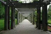The landscaped gardens designed by João Gomes da Silva,[45] on approximately 18 hectares of land, preserved the most important species already existing on the site. The new Serralves Park opened to the public in 1987 and was subject to a recovery and enhancement project initiated in 2001 and concluded in 2006. Currently on display in the park are sculptures by Claes Oldenburg, Dan Graham, Fernanda Gomes, Richard Serra, and Veit Stratmann.