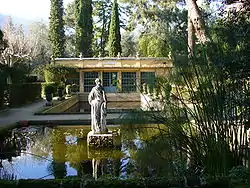 The garden was created in 1924–1939 by Lawrence Johnston, who had earlier created in Britain the celebrated Hidcote Manor Garden (1907). It lies on a hillside in the Gorbio valley, with a farmhouse to which Johnston added two large wings. Johnston traveled the world collecting plants, and Serre de la Madone offered an excellent site for plants from subtropical regions. Over the years he created a series of terraces among old olive trees, planted and tended by twelve gardeners.
