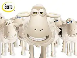 The company is famous for its "Counting Sheep" advertising campaign which were animated by Aardman Animations and first created in 2000. The counting sheep are shown to be desperate for work in wanting people to sleep at night, but get frustrated whenever they found out people have a Serta mattress.