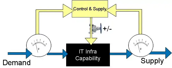 A SOI exposes a set of fundamental services such as mobility or security which form a part of the network environment that can deliver resource sharing, application integration, and communications and collaboration: ubiquitously, scalably, reliably, sustainably, maintainably and cost-effectively. In order to ensure each service provides a standard response to a standard invocation at all times, the service must include a control process. The control process measures both the demand and the supply of a capability and automatically updates the capability if required.