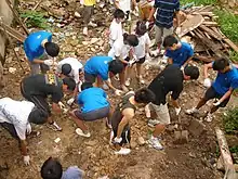 Service learning is about taking the student out of the classroom and placing them in an environment where they can make a difference while also learning. Service learning strengthens not just the community that is being helped but the person who is giving their time and effort to their cause, which benefits them socially, mentally, emotionally, and spiritually. For many service learning is simply tending to basic human needs: food, water, clothes, and housing. Some organizations, such as The Salvation Army, also seek to attend to the spiritual side of service learning. They used the motto "soup, soap, and salvation"[54] to show what they wanted to do with their ministry. "The Salvation Army sees no conflict between spiritual and social ministry. It seeks to serve people so as to satisfy both the spiritual and social dimensions of their needs."[55]