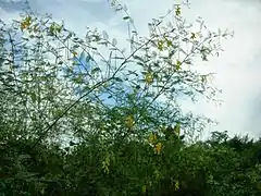 The yellow flowers of S. aculeata are eaten as a vegetable in Southeast Asia. They are much smaller than the more popular white flowers of Sesbania grandiflora, but similar in shape. Still, they are appreciated as food in Thai and Vietnamese cuisine.[2]