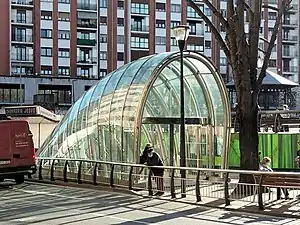 Sestao is a station on line 2 of the Bilbao metro. It is located in central Sestao, in close proximity to the city hall and the Santa María church. It opened on 8 January 2005 and it acted as northern terminus for line 2 until the opening of the Portugalete extension in 2007.[3][4]