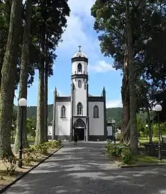 - Church of São Nicolau (Portuguese: Igreja Paroquial de Sete Cidades/Igreja de São Nicolau), the revivalist Neo-Gothic church is oriented around a single-nave, rectangular plan consisting of a sacristy, chancel and annexes, with differentiated covering and illuminated by lateral Gothic windows. The main facada includes a single, central belltower, with doorway and windows (also Gothic). The interior includes baptistery, triumphal arch and simple altar.[7]