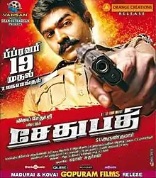 Sethupathi is a 2016 Indian Tamil-language action thriller film written and directed by S. U. Arun Kumar and produced by Shan Sutharsan under the Vansan Movies banner. It stars Vijay Sethupathi and Remya Nambeesan.[1][2] The film revolves around a police officer whose reputation runs into trouble when a young suspect is severely injured in his custody and threats from his enemies increase.