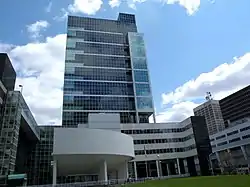 At One Newark Center, the Law School is housed in a 22-story building in Downtown Newark completed in 1991.[24] The Newark Campus building provides 210,000 square feet (20,000 m2) including 65,000 square feet (6,000 m2) of library, named for Congressman Peter W. Rodino, Jr.. It is at the corner of Raymond Boulevard and McCarter Highway, two blocks west of Penn Station Newark, where numerous connections can be made to New Jersey Transit and PATH (an approximate 20 minute ride to Manhattan).[25] While many students commute from around the New York metropolitan area, other students choose to reside at Eleven 80, the Union Building, and Renaissance Towers. One Newark Center is one of the tallest buildings in the city and also contains commercial offices. Nearby attractions include the New Jersey Performing Arts Center, Newark Museum, Prudential Center and Red Bull Arena.[26]