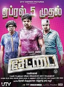 Settai (English: Mischief) is a 2013 Indian Tamil-language black comedy film directed by R. Kannan.[1] A remake of the 2011 Bollywood English-language film, Delhi Belly,[2] it stars Arya, Hansika Motwani, Anjali, Santhanam and Premji.[3] The film, which began filming in Chennai on 7 May 2012,[4] released for April 2013. The audio was launched on 30 January.[5] The film released on 5 April 2013.[6][7]