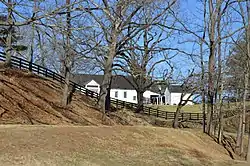 Seven Oaks Farm is a historic home and farm complex located near Greenwood, Albemarle County, Virginia. It was formerly known as Clover Plains and owned by John Garrett, who assisted with building the University of Virginia and was a bursar with the university. The land is named after the original seven oak trees on the property named after the first seven presidents born in Virginia. Only one of the original seven trees still standing after six were destroyed in 1954 in the aftermath of Hurricane Hazel. The main house was built about 1847–1848, and is a two-story, five-bay, hipped-roof frame building with a three-bay north wing. The interior features Greek Revival style design details. It has a two-story, pedimented front portico in the Colonial Revival style addition. Sam Black's Tavern is a one-story, two-room, gable-roofed log house with a center chimney and shed-roofed porch. Black's Tavern has since been moved to the adjacent Mirador property circa 1989. It was originally owned by Samuel Black, a Presbyterian minister of the Sam Black Church in West Virginia. Blacksburg, Virginia, was named after the family. Other buildings on the farm include an ice house, smokehouse, dairy, greenhouse, barns, a carriage house, a garage and several residences for farm employees. The ice house on the land, typically framed in an octagonal shape, in fact only has six sides.[3]
